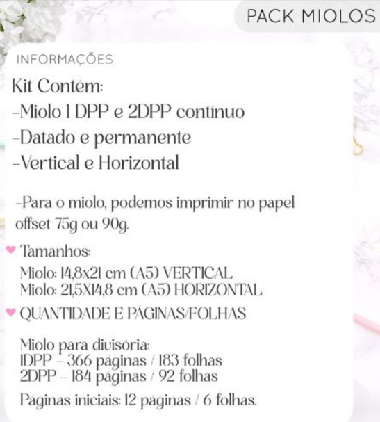 Miolo: papel 90–120 g (offset/couchê fosco).