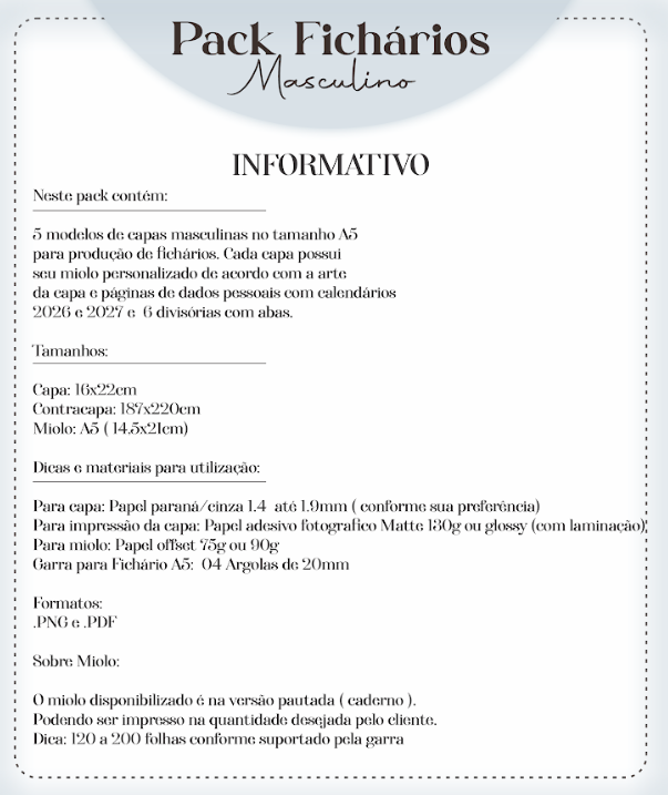 DESCRIÇÃO: PACK FICHARIOS MASCULINOS